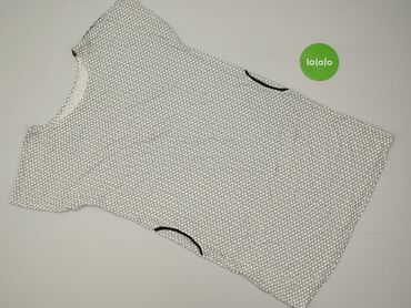 Sukienka damska z krótkim rękawem, rozmiar L. - Krój: lekko rozszerzana ku dołowi, dekolt okrągły. - Rękawy: krótkie, delikatnie bufiaste. - Wzór i kolor: geometryczny print w odcieniach różu i ci...