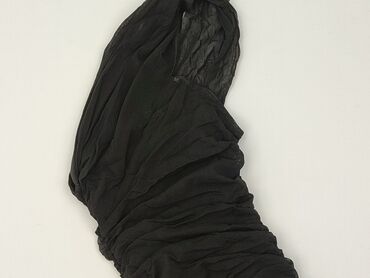 Czarna sukienka AMISU, rozmiar EU 38 (US 8, CN 165/88). - Fason: dopasowany, długość przed kolano (bodycon/tuba). - Dekolt/asymetria: jeden krótki rękaw + drugi z obniżoną linią, efekt „one-shoul...