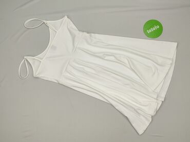 Biała sukienka SHEIN, rozmiar S (EU 36, US 4). - Lekka, zwiewna tkanina o subtelnej, pionowej fakturze - Skład: 100% poliester (metka na zdjęciu) - Krótki rękaw z marszczeniem - Dekolt w kształcie ...
