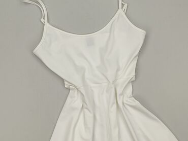 Sukienka SHEIN - Rozmiar: S (EU 36, US 4 – na metce) - Materiał: 100% poliester - Kolor: biały - Fason: rozkloszowana mini z zaznaczoną talią - Dekolt: w kształcie litery V - Rękawy: krótkie falba...
