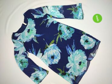 - Wzór: duże, malarskie kwiaty w odcieniach turkusu, błękitu i zieleni na granatowym tle