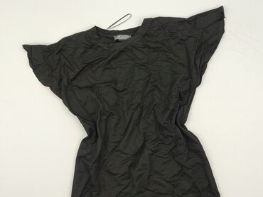 Czarna damska sukienka/tunika z krótkim rękawem - Fason: lekko dopasowana, długość mini/tunika - Dekolt: okrągły - Zapięcie: krótki zamek błyskawiczny z przodu (dekoracyjny i funkcjonalny) - Rękaw...