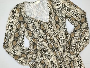 Sukienka damska w panterkę, rozmiar XL. - Fason: kopertowy z zakładkami, wiązanie/pasek w talii podkreślający sylwetkę - Dekolt: V - Rękaw: długi z lekkim marszczeniem przy mankiecie - Dół: rozklo...
