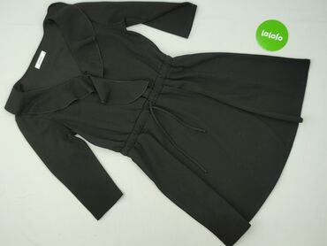 Sukienka Reserved – rozmiar S - Kolor: czarny - Fason: rozkloszowany, z doszywanymi falbanami/zakładkami na dole - Dekolt: w kształcie litery V - Rękawy: długie, zakończone delikatną gumką - Talia...