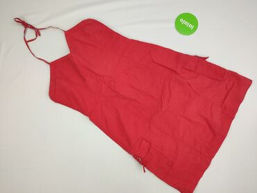 Sukienka na ramiączkach, rozmiar L. - Krój: lekko rozkloszowana, z marszczeniami; ramiączka szerokie, prosty dekolt. - Wzór: patchwork na intensywnie czerwonym tle – mieszanka drobnych kropek, ser...