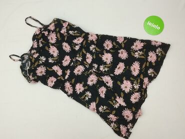Sukienka Sinsay – rozmiar L - Fason: mini z falbanami, rozkloszowany dół - Na cienkich, regulowanych ramiączkach - Dekolt z subtelną falbaną i wiązaniem z przodu - Talia podkreślona delikatnym mar...