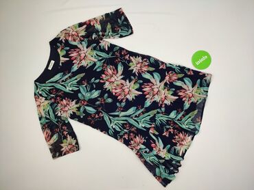 Sukienka damska Comeng, rozmiar L/XL. - Kolor: granatowy z wielobarwnym, kwiatowym printem (żółte, białe i zielone motywy roślinne). - Krój: taliowana, rozszerzająca się ku dołowi, długość mini/za...