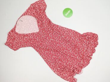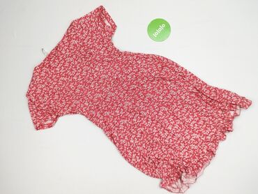 Na co dzieńUżywana damska sukienka mini w kolorze czerwonym z białym wzorem w kwiaty. Charakteryzuje się dekoltem w kształcie litery V i krótkimi rękawami. Wykonana z materiału w 95% składającego się z poliestru i 5% z elastanu, co zapewnia komfort i dopasowanie. Idealna na co dzień, na ciepłe dni.