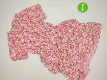 Sukienka w drobny kwiatowy wzór - Fason: kopertowy (wrap) z głębokim dekoltem V i falbaną przy dekolcie - Rękawy: krótkie, bufiaste z marszczeniem i falbanką przy mankiecie - Talia: elastyczna, po...