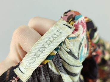 Sukienka damska w kwiatowy wzór, made in Italy. - Krój: kopertowy dekolt z zakładkami, talia podkreślona gumką, lekko rozkloszowany dół - Rękawy: długie, zakończone delikatną gumką - Długość: mini...Stan: