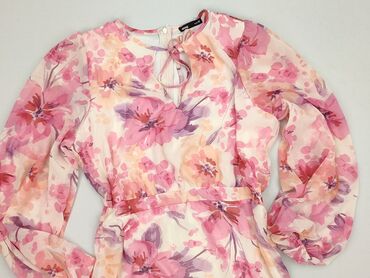 Sukienka damska Sinsay – rozmiar M - Kolor: pudrowy róż - Wzór: kwiatowy, wielobarwne nadruki z delikatnym konturem - Krój: kopertowy/przekładany z wiązaniem w talii - Rękaw: długi - Długość: mini...