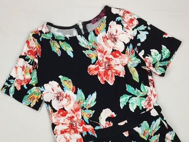 Sukienka damska MISO, rozmiar 8 (UK). - Kolor: czarny w drobny, wielobarwny kwiatowy print. - Krój: bez rękawów, dopasowana w talii z rozkloszowanym dołem. - Kołnierzyk i zapięcie na guziki z przod...