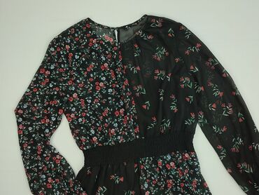Sukienka Sinsay, rozmiar XL - Krój: mini z rozkloszowanym dołem, delikatnie marszczona w talii - Rękaw: długi - Dekolt: okrągły, z zapięciem na guziczek z tyłu (łezka) - Wzór: drobna łąka/kwiatki ...