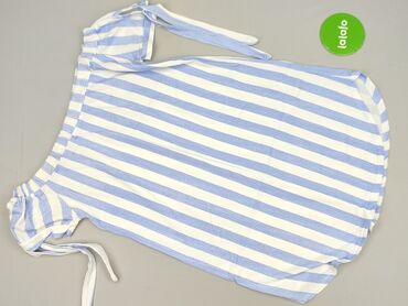 Lekka sukienka na ramiączkach w paski - Krój: luźny, swobodny, z głębokimi wycięciami pod pachami i na plecach; długość mini - Wzór: wąskie, poziome paski w kolorze granatowym na białym tle (maryn...Stan: