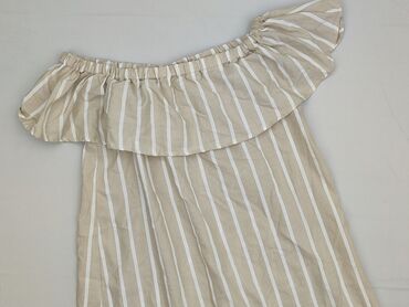Sukienka Sinsay, rozmiar S - Krój: mini, prosta linia z odcięciem w talii, dekolt hiszpański/łódka z gumką - Rękawy: krótkie, bufiaste z marszczeniem przy mankiecie - Zapięcie: ozdobny rząd dużych...