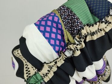 Sukienka damska z wzorem patchwork/boho, made in Italy. - Fason: mini do kolan, rozkloszowany dół z falbanami, długie rękawy zakończone marszczeniem. - Dekolt okrągły, z tyłu małe rozcięcie na gu...