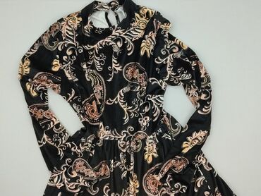 Sukienka MOHITO Basic - Rozmiar: 36 - Krój: mini, z długim rękawem - Dekolt: kopertowy w kształcie litery V - Talia: lekko marszczona/gumka, podkreślająca sylwetkę - Print: paisley (czarne wzory n...