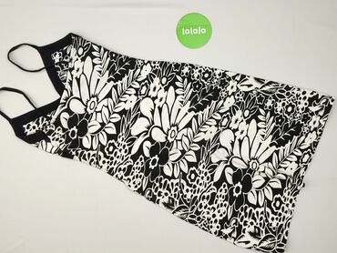 Sukienka letnia na ramiączkach – czarno-biała, w kwiatowy wzór. - Krój: lekko rozkloszowana, z dekoltem w kształcie litery V. - Ramiączka: cienkie, regulowane. - Talia: elastyczne marszczenie (smo...