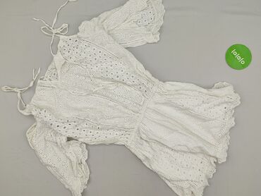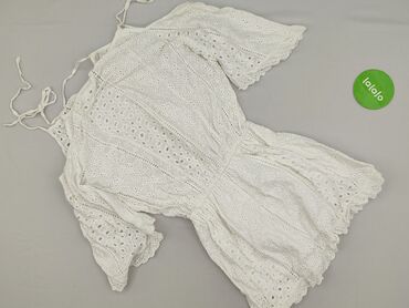 Biała sukienka z ażurowej bawełny (ang. broderie anglaise) - Krój: lekko rozkloszowany, długość mini - Dekolt w kształcie litery V z falbankami z przodu - Krótkie, zakrywające ramiona rękawki - Sz...Stan: