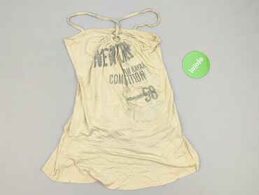 Sukienka/mini tunika na ramiączkach – żółta - Krój: lekko rozkloszowany, odcięcie w talii, dekolt okrągły - Ramiączka: podwójne, krzyżowane na plecach - Materiał (z metki): 76% poliester, 20% wisk...