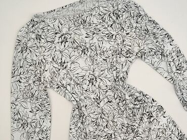 Sukienka damska z długim rękawem - Fason: dopasowana góra, lekko rozkloszowany dół (mini). - Kolor: biały/kremowy z czarnym, powtarzającym się, graficznym printem w kształcie kwiatów i kół. - Mate...
