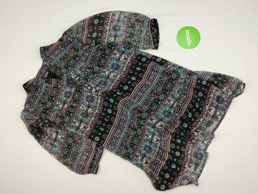 Sukienka dzianinowa mini z krótkim rękawem - Fason: dopasowany, elastyczny, długość mini - Dekolt: szeroki, zaokrąglony - Rękawy: krótkie, lekko bufiaste - Wzór: poziome, etniczne/geometryczne pas...