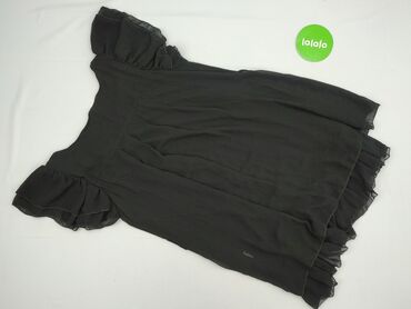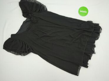 Czarna sukienka damska o luźnym, zwiewnym kroju. - Fason: oversize z delikatnymi, marszczonymi wstawkami poziomymi tworzącymi subtelne falbany na dole. - Rękawy: krótkie, lekko opadające (kimono/c...