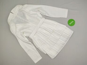 Biała sukienka z krótkim rękawem i rozkloszowanym dołem. - Krój: dopasowana góra, odcięcie w talii, spódnica w kształcie litery A/rozkloszowana, okrągły dekolt. - Długość: mini/przed kolano (na zd...