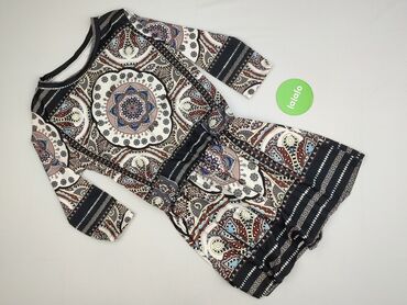 Sukienka damska na ramiączkach, wzór etniczno‑boho - Krój: bez rękawów, okrągły dekolt, taliowanie w pasie (gumka), długość mini/tuż nad kolano - Materiał: lekka, miękka dzianina/elastyczna tkanin...