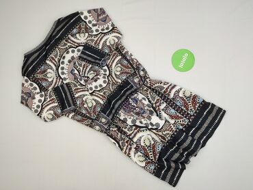 Sukienka damska o długości mini z krótkimi rękawami i dekoltem w kształcie litery V. Wzór paisley i kwiatowy na czarnym tle nadaje jej unikalny charakter. Elastyczny pas w talii i zapięcie na guzik...