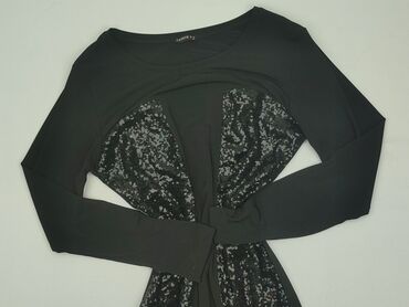 Czarna sukienka De Folty – rozmiar M - Fason: dopasowany, długość mini/za kolano (w zależności od wzrostu), rękaw 3/4 - Dekolt: łódka - Materiał: 95% poliester, 5% elastan – elastyczna, miękka pod...Czarna sukienka mini z długim rękawem – ZENTEX, rozmiar M.