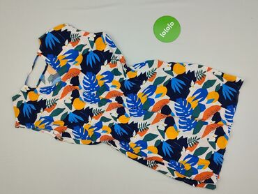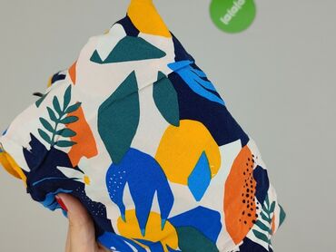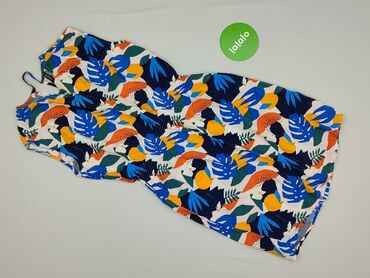 - Wzór: kolorowy, tropikalny print z liśćmi i akcentami w odcieniach granatu, niebieskiego, zieleni, żółci i pomarańczu na jasnym tle.