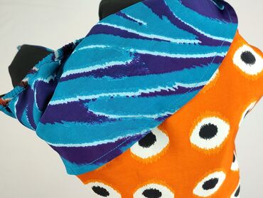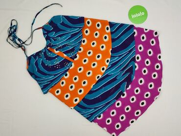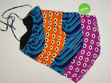 - Wzór i kolory: intensywne, wielobarwne pasy w odcieniach turkusu, granatu i fioletu połączone z pomarańczowymi i fioletowymi panelami w kropki/„oczkowy” print