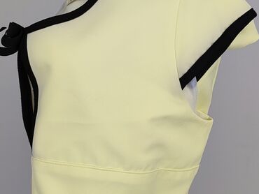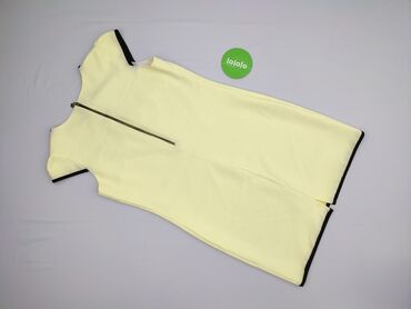 Sukienka damska w kolorze pastelowej żółci - Krój: prosty, lekko rozkloszowany dół, modelujące pionowe cięcia optycznie wysmuklające sylwetkę - Rękaw: krótki - Dekolt: okrągły - Zapięcie: suwak z ...
