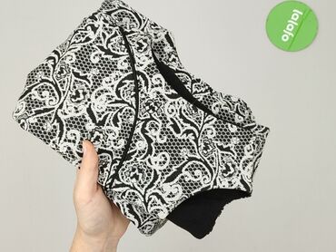 - Tkanina: elastyczna, średniej grubości dzianina z fakturowanym, koronkowym motywem na czarnym tle; przyjemna w dotyku, dobrze układa się na sylwetce.