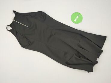 Sukienka ołówkowa bez rękawów, czarna w drobne białe kropeczki (micro print). - Fason dopasowany, podkreślający sylwetkę, długość za kolano. - Szerokie ramiączka, dekolt w kształcie delikatnego V...