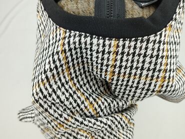 Sukienka damska Janina, rozmiar EUR 34 (FR 36). - Krój ołówkowy, długość za kolano. - Krótkie rękawy. - Wzór pepitka w kolorach: czarno-biały z akcentami musztardowymi. - Okrągły dekolt wyk...