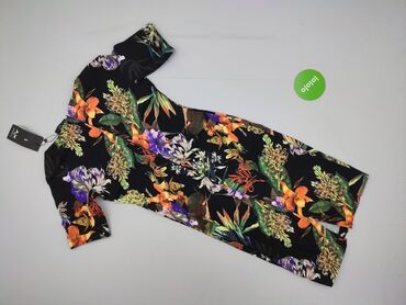 Sukienka AX Paris, rozmiar 14 - Fason: ołówkowa/tuba, bez ramiączek (strapless), długość midi - Wzór: intensywny, wielobarwny print w kwiaty na ciemnogranatowym tle - Materiał: 95% bawełna, 5% elas...