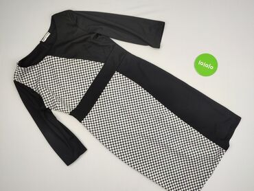 Sukienka damska GREENCE, rozmiar XXL. - Krój: dopasowany, długość za kolano - Rękaw: 3/4 - Dekolt: okrągły - Kolorystyka: czarna baza z panelem w klasyczną pepitkę (biało‑czarną) z przodu - Detal:...