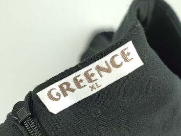 Sukienka damska GREENCE, rozmiar XXL - Krój: ołówkowy, dopasowany, z krótkim rękawem - Długość: do kolan (midi) - Wzór: kontrastowy panel w paski (czarno‑biały) z przodu, boki i tył gładkie czarne...Sukienka GREENCE, rozmiar XL