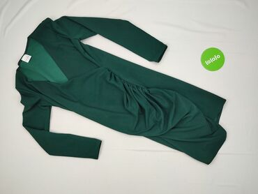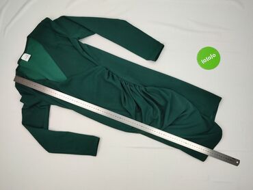 Sukienka PAKUTEN, rozmiar S/M - Kolor: butelkowa zieleń - Fason: dopasowana mini, ołówkowy dół; kopertowy dekolt z zakładkami; długie rękawy z delikatnie bufowanymi ramionami; podkreślona talia - M...