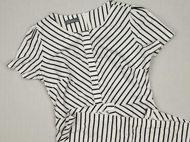 Sukienka/Tunika w paski - Fason: prosta, lekko dopasowana, długość przed kolano; dół zakończony czarnym ściągaczem - Wzór: czarno-białe, wąskie poziome paski na korpusie - Rękawy: krótkie, raglano...