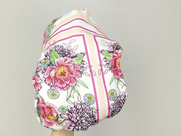 - Wzór: intensywny, wielobarwny nadruk kwiatów (róże/piony, chryzantemy, stokrotki) z różowo-beżowymi pasami