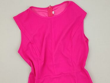 Sukienka damska w kolorze fuksji/magenta - Krój: ołówkowy, długość za kolano, z krótkim rękawem - Dekolt: półokrągły z drobnymi zakładkami z przodu - Zapięcie: zamek błyskawiczny z tyłu - Materiał...