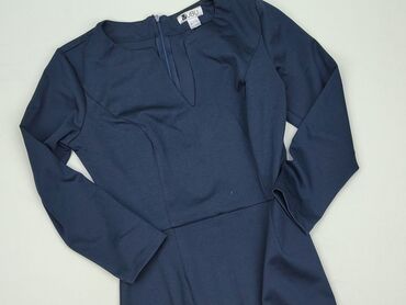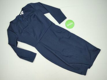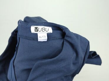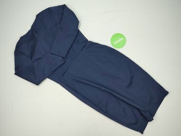 Granatowa sukienka damska marki Vubu o długości mini, wykonana z miękkiego, teksturowanego materiału w drobną kratkę. Charakteryzuje się okrągłym dekoltem i rękawami o długości 3/4. Fason dopasowan...