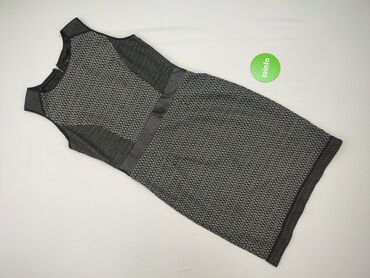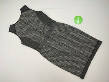 Sukienka ołówkowa z dzianiny, wzór w drobną czarno‑szarą kratkę/romby. - Fason: dopasowany, długość za kolano, rękaw 3/4. - Dekolt: łódka. - Zapięcie: długi zamek na plecach. - Materiał (metka): 3...