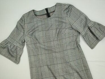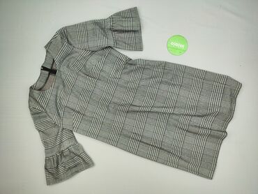 Sukienka damska w kratkę z długim rękawem - Krój: ołówkowy/zwężany w talii, długość mini/tuż nad kolano - Wzór: drobna kratka na ciemnoszarym tle - Zapięcie: długi, widoczny zamek na plecach - Ręk...