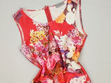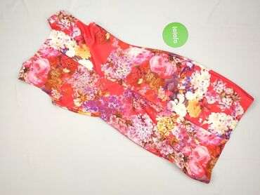 Czerwona sukienka damska Home, rozmiar S. - Fason: ołówkowy, przylegający, długość midi/przed kolano - Dekolt okrągły - Koronkowe wstawki na ramionach i górnej części pleców w kwiatowy wzór - Krót...