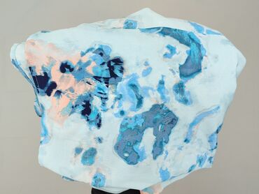 - Wzór: akwarelowy kwiatowy nadruk w odcieniach błękitu, turkusu, granatu i pudrowego różu na jasnoniebieskim tle