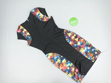 Sukienka damska bez rękawów, ołówkowa, w kolorystyce czarno-białej z kwiatowym nadrukiem. - Krój: dopasowany, długość midi, dekolt pod szyję, bez rękawów - Wzór: kontrastowe, ukośne panele w czern...